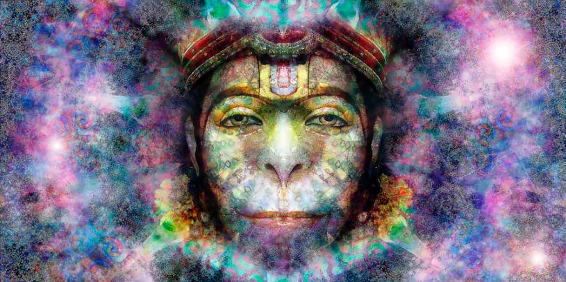 Cuando fui invitado por primera vez al templo de Hanuman no pensé que tendría el honor de verlo, pero pasó. Mientras estaba contando el Ramayana, en inglés -con un traductor a mi lado que volvía a contar en Tamil las partes del Ramayana que yo recuperaba-, empecé a notar que el sacerdote ya no era el sacerdote. Su cuerpo empezó a balancearse siguiendo un ritmo que recordaba más bien el de los monos. Se apoyaba en el suelo con los brazos estirados, como lo hacen los gorilas, y sus ojos ganaron un brillo hipnótico, juguetón, alegre, profundo e inteligente. El traductor me susurró de repente al oído: «cuida lo que cuentas porque Hanuman está aquí». Después los tambores aceleraron su latido, aumentó el volumen, Hanuman se levantó, rezó con voz atronadora, levantó una pesada maza que tenía preparada y se puso a bramar en Tamil y Sánscrito.