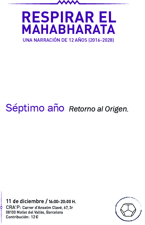 Y esta es la última entrada del séptimo año de Respirar el Mahābhārata. La próxima será el manifiesto, con el que termino cada año, y el día 12 de Diciembre tendremos el ritual de narración anual.