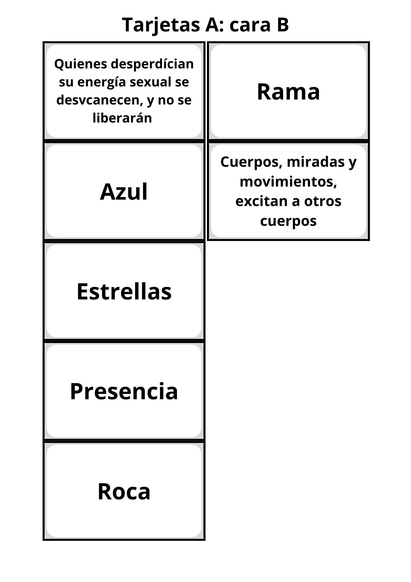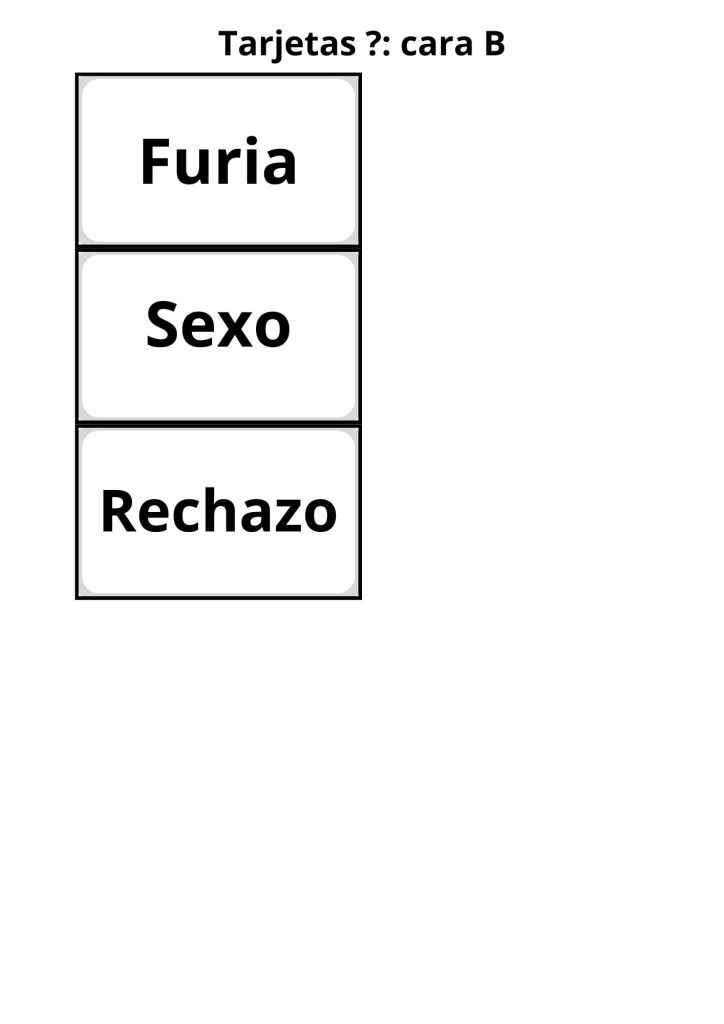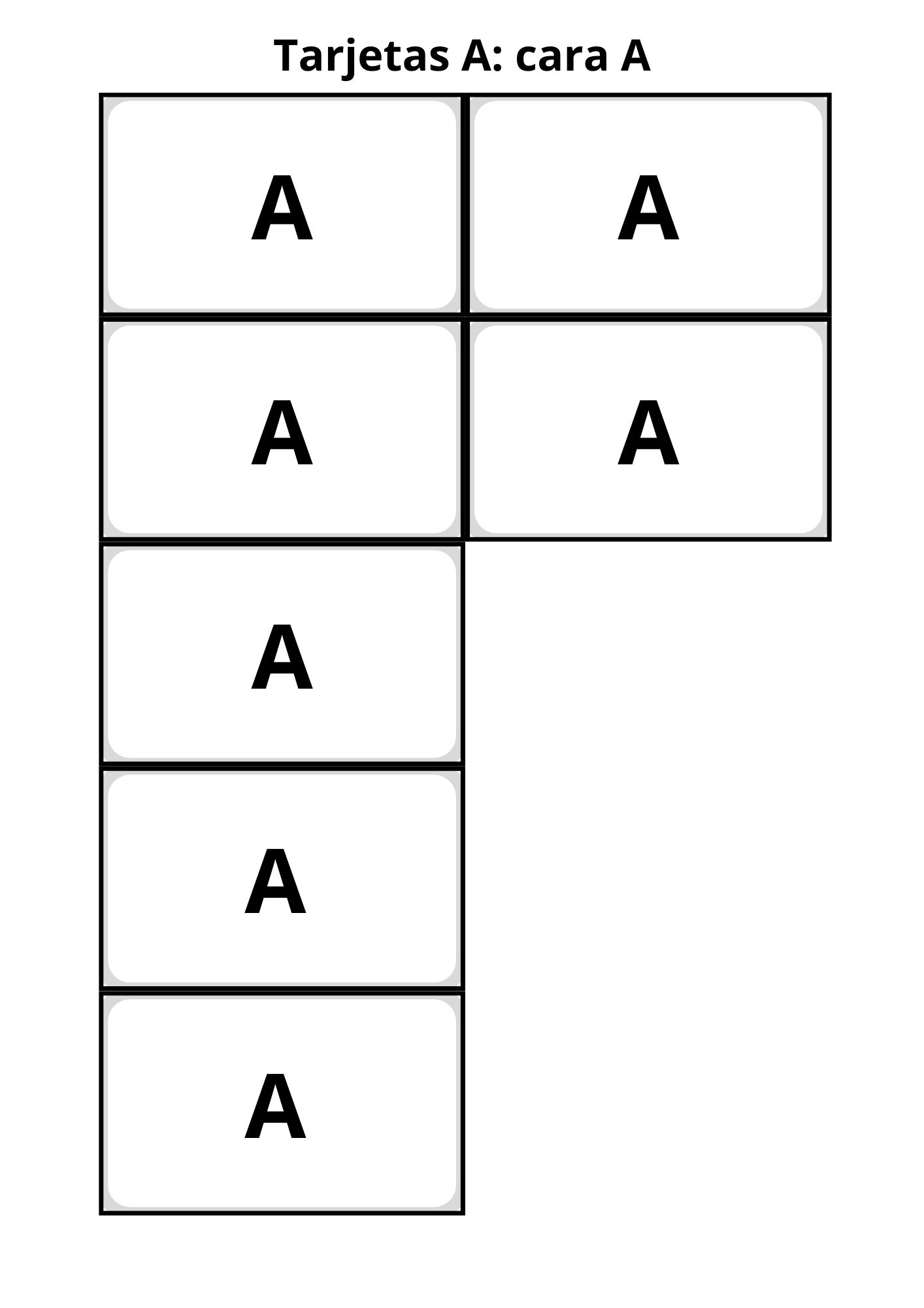 Para leer este tablero baraja las tarjetas con interrogante y coloca al azar cada una sobre una casilla diferente del tablero. Combina debajo una tarjeta A con una tarjeta B.